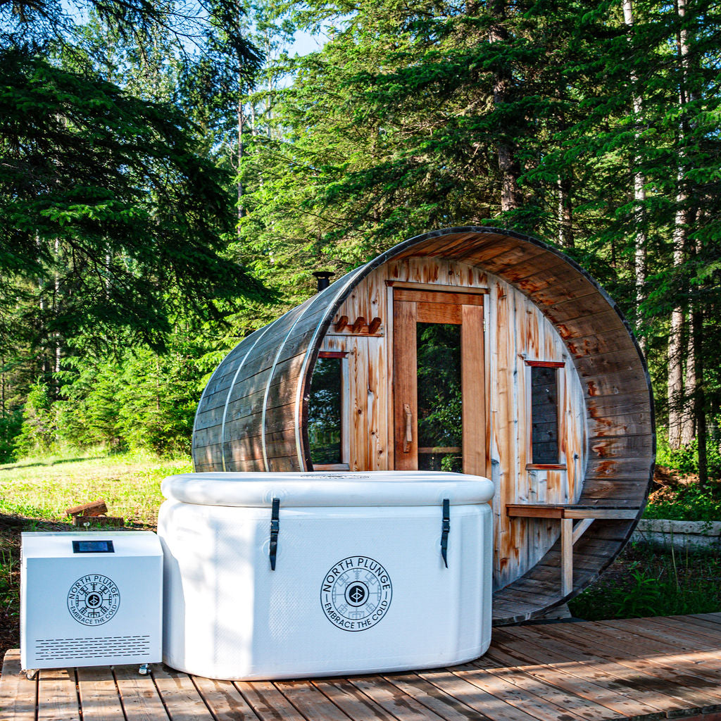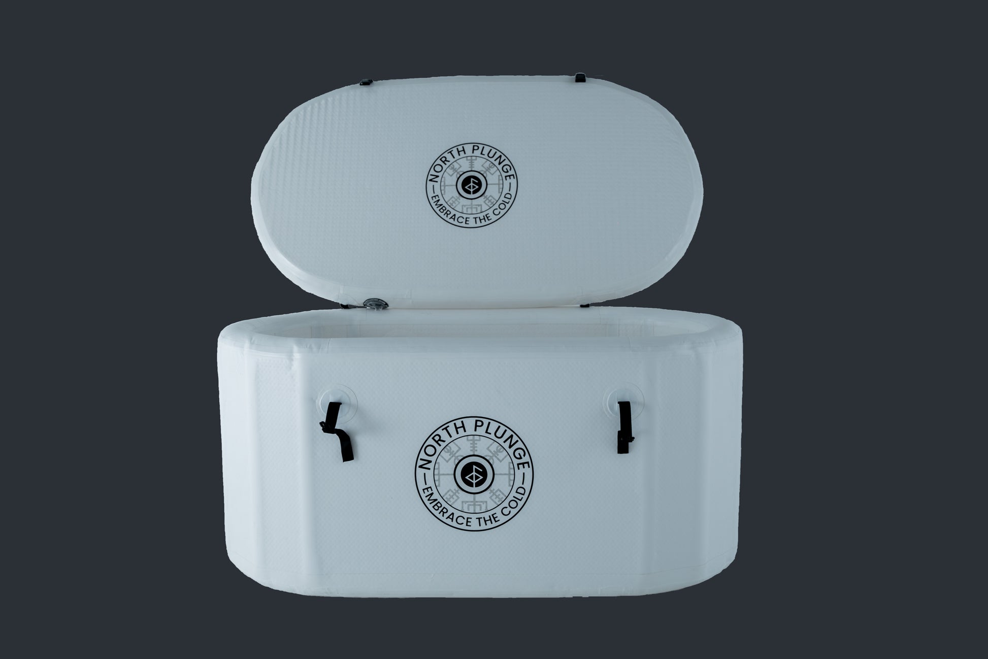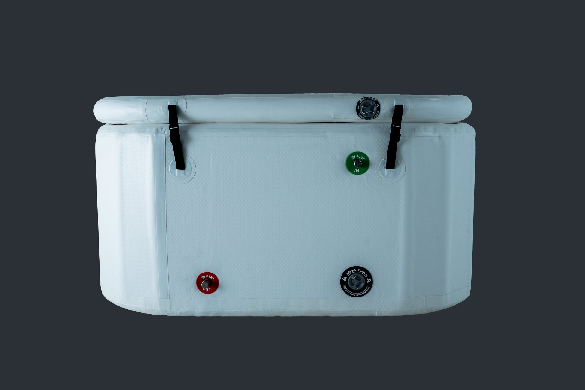 The Embrace Bundle-premium is our flagship product, designed to give a clean, portable, always-ready cold plunging experience. The tub is constructed from heavy-duty drop-stitched materials, and is strong enough for a grown man to stand on when inflated. The chiller is outfitted with a one horsepower motor for faster temperature adjustment, has a 3-step filtration system, and can both cool and heat the water so it doubles as a hot tub. Everything is designed to be plug and play, and can be set up in as little as 15 minutes.